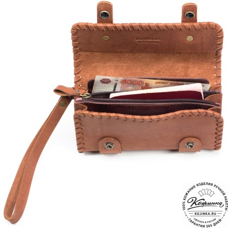 Отдельно портмоне можно носить использую кожаную ручку-петлю, которая крепится на небольшой карабин.