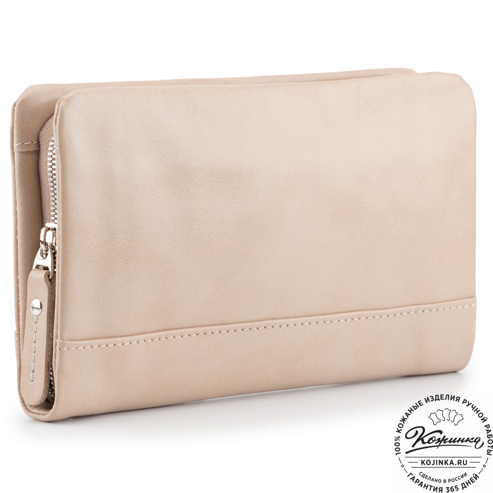 Внутри два открытых отделения для купюр, паспорта или телефона. Между ними карман на молнии для хранения мелочи.