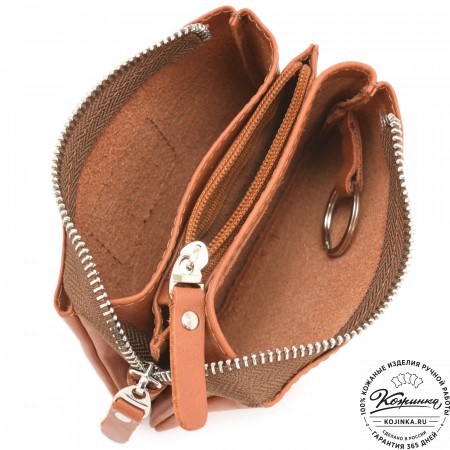 Кожаный кошелек "Солярис" – компактная модель с двумя отделениями для купюр, ключей и небольшим карманом на молнии для хранения мелочи.