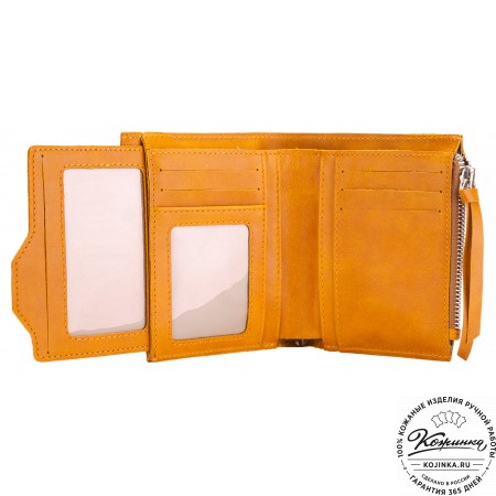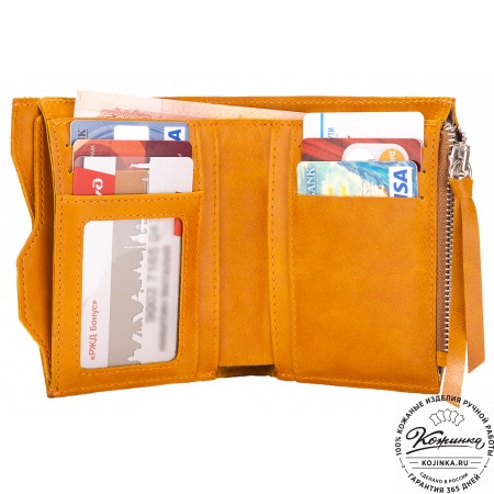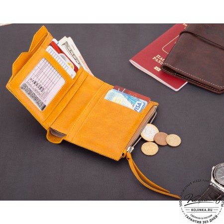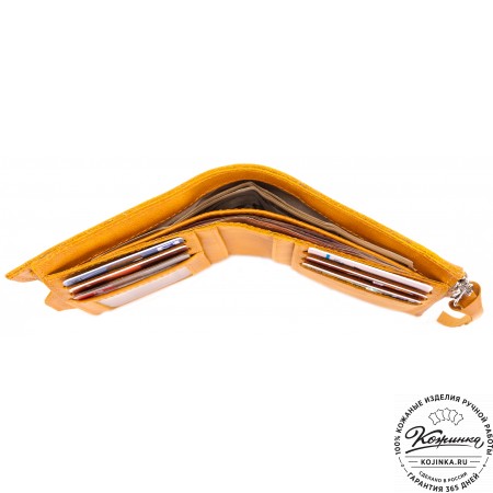 Кожаный купюрник (желтый) - стильный кошелек для купюр с продуманным дизайном из гладкой качественной красной кожи.