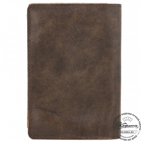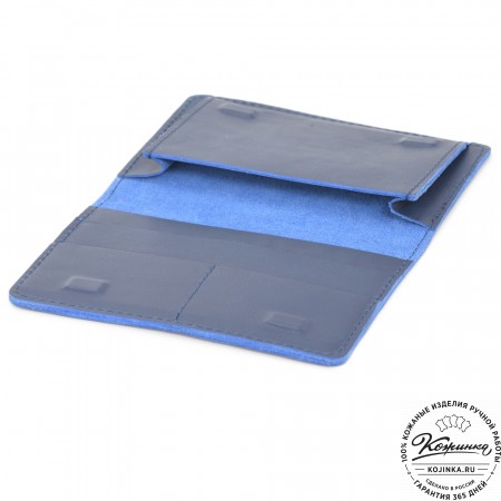 Этот купюрник в три сложения закрывается на хлястик с кнопкой. Внутри распологаются: откидное отделение для купюр и три кармана для карт.