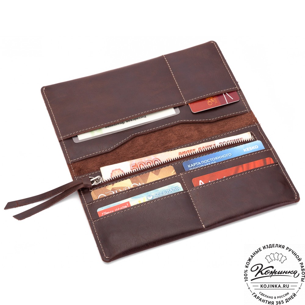 Портмоне вместит в себя много наличных денег, монеты в специальном отделении на молнии, пластиковые карты и даже чеки от покупок в магазинах. Все отделения с подкладом, аккуратно прострочены.