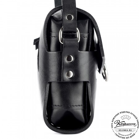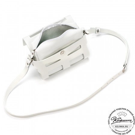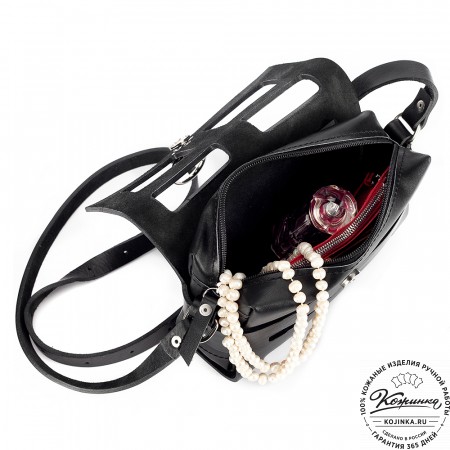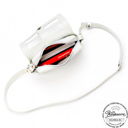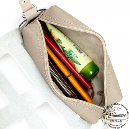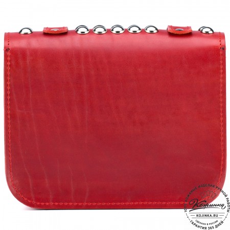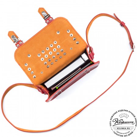У сумочки одно отделение и большой накладной карман с лицевой стороны. Закрывается клапаном на кнопку.
