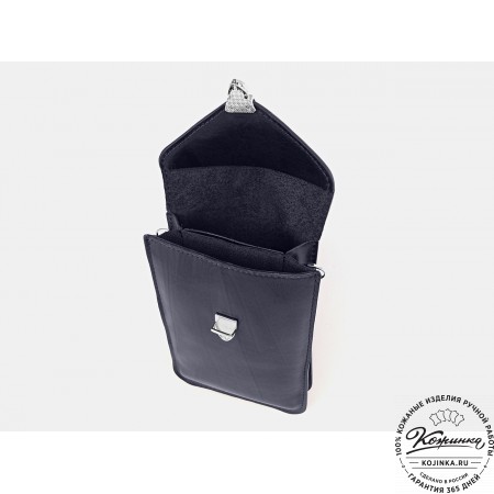 Плечевой ремень кожаный, регулируется по длине ременной пряжкой. Ремешок съемный, крепится по бокам на карабины.