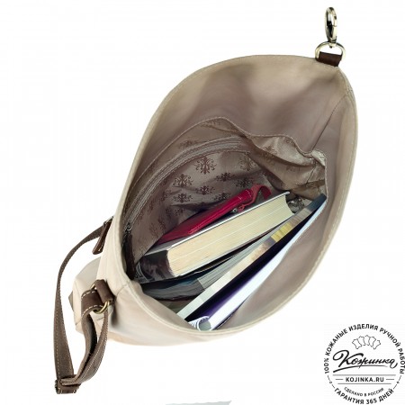 Основное отделение закрывается на молнию. Сумка без подкладки.