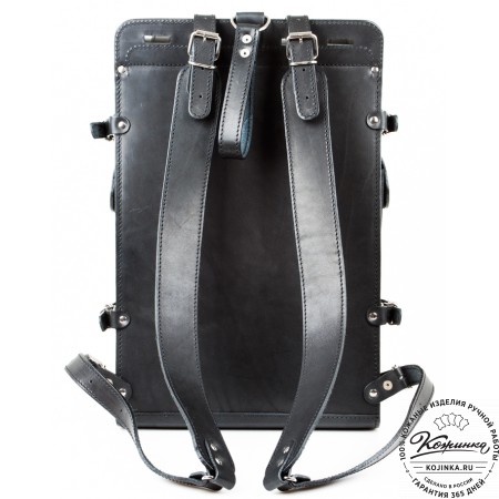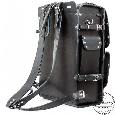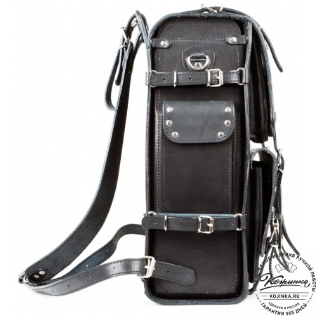 Классический рюкзак из толстой прочной кожи. Одно отделение и два наружных кармашка.