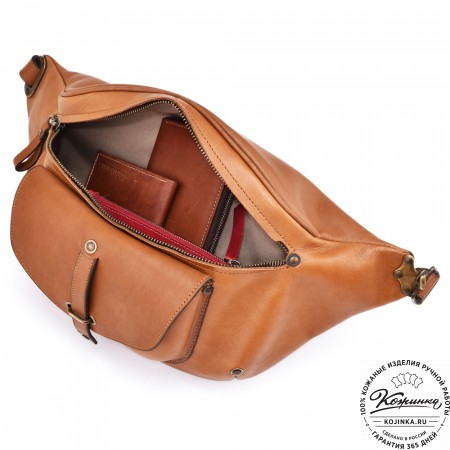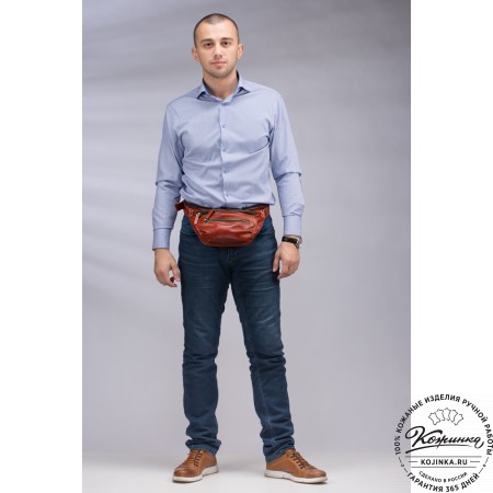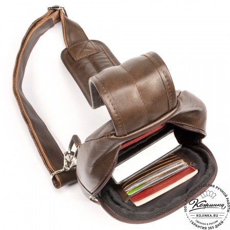 Кожаная нагрудная сумка "Аполлон" (рыжий антик) - самый удобный аксессуар для документов и денег!