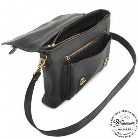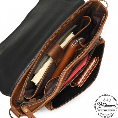 У сумки прочные кожаные ручки и регулируемый по длине плечевой ремень. В зависимости от варианта использования, ручки или ремень «прячутся» в специальных карманах на молнии.