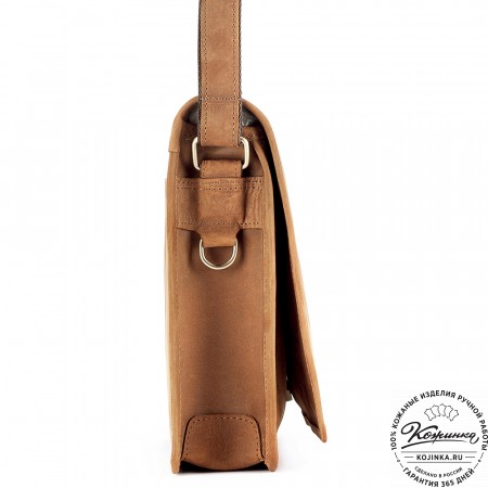 Плечевой ремень из кожи, усилен стропой, регулируется по длине. Ремень съемный, крепится на карабины.