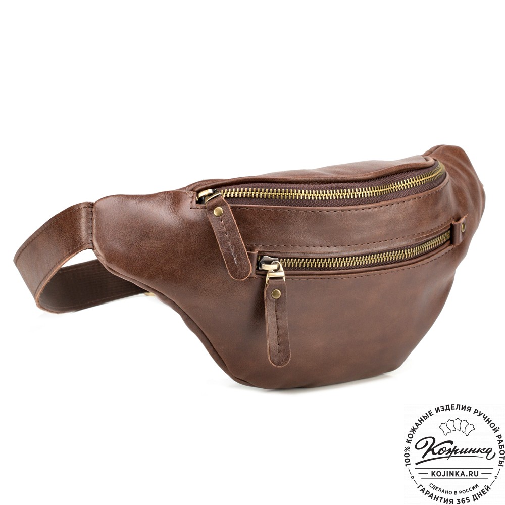 Кожаная сумка на пояс "Сандро" (коричневая) – для активного отдыха и путешествий! Телефон, документы, деньги - все поместится в эту удобную компактную сумочку.