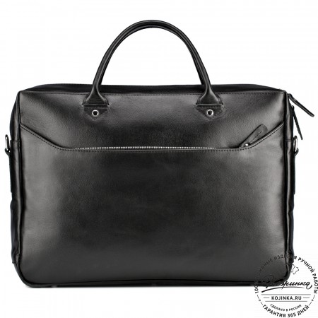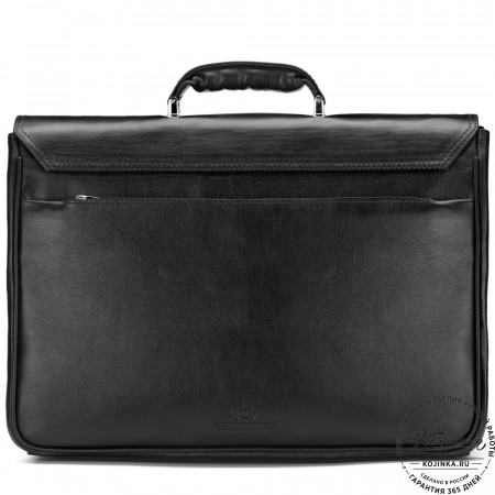 Снаружи, на задней стенке, расположен глубокий плоский карман на кнопке на всю ширину портфеля.