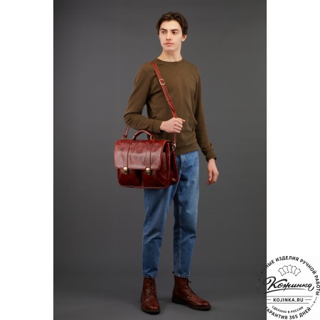 На моделях представлен портфель "Александрия" из кожи Антик рыжего цвета.