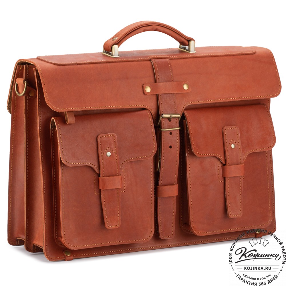 Кожаный портфель "Мирон" (рыжий) – мужской портфель из толстой натуральной кожи.