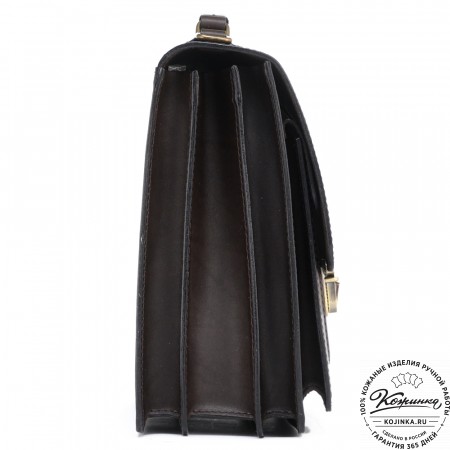 Кожаный портфель "Мирон" (тёмно-коричневый) – мужской портфель из толстой натуральной кожи.