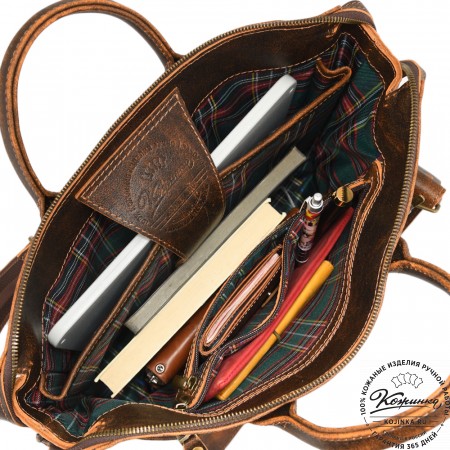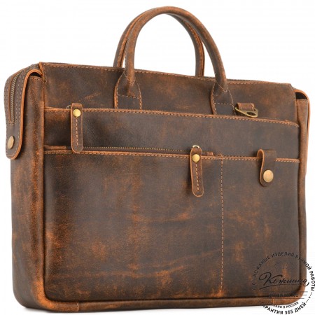 Кожаная сумка "Доминик" - удобная деловая сумка с функциональностью портфеля. Выглядит солидно и внушительно, но менее официально, чем портфель.