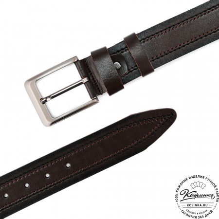 Толстая грубая шорно-седельная кожа высокого качества, удобная пряжка из латуни, лаконичная прошивка по всей длине ремня.