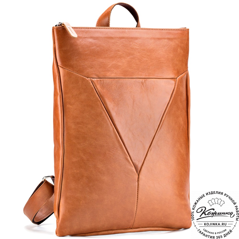 Кожаный рюкзак "Ария" (рыжий) - стильный городской рюкзак с оригинальным дизайном и застежкой на молнии.