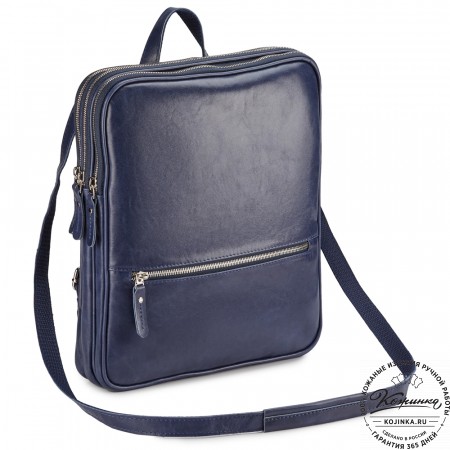 Кожаный рюкзак "Бэнжамин" (синий перламутр) – стильный городской рюкзак из качественной натуральной кожи Крейзи хорс.