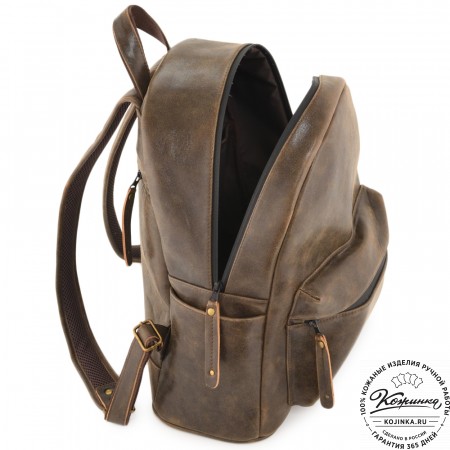Рюкзак выполнен из высококачественной натуральной кожи Антик c эффектом Пулл-ап.