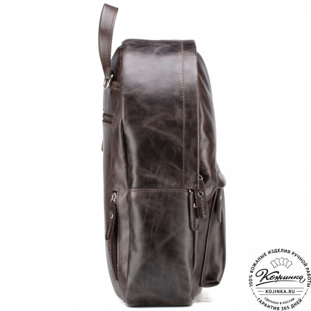 Рюкзак изготовлен из высококачественной натуральной кожи с восковым покрытием и эффектом Пулл-ап. В процессе обработки эту кожу покрывают натуральным воском и максимально сохраняют ее природный рисунок, благодаря чему она приобретает характерную фактуру и уникальные износостойкие свойства. Такая кожа со временем выглядит только лучше - все приобретенные в процессе эксплуатации потертости и изгибы добавляют уникальности ее первоначальному рисунку!