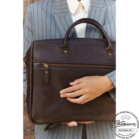 Кожаная сумка "Доминик" – стильная и удобная деловая сумка с функциональностью портфеля. Выглядит солидно и внушительно, но менее официально, чем портфель.
