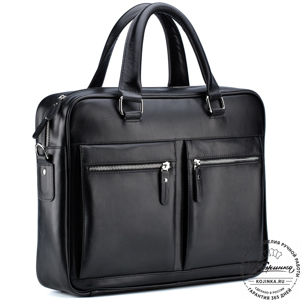 Кожаная сумка "Гофман" (чёрная) – удобная, практичная, стильная деловая сумка из натуральной кожи. Вместительная модель с секцией для ноутбука и удобными карманами внутри и снаружи.