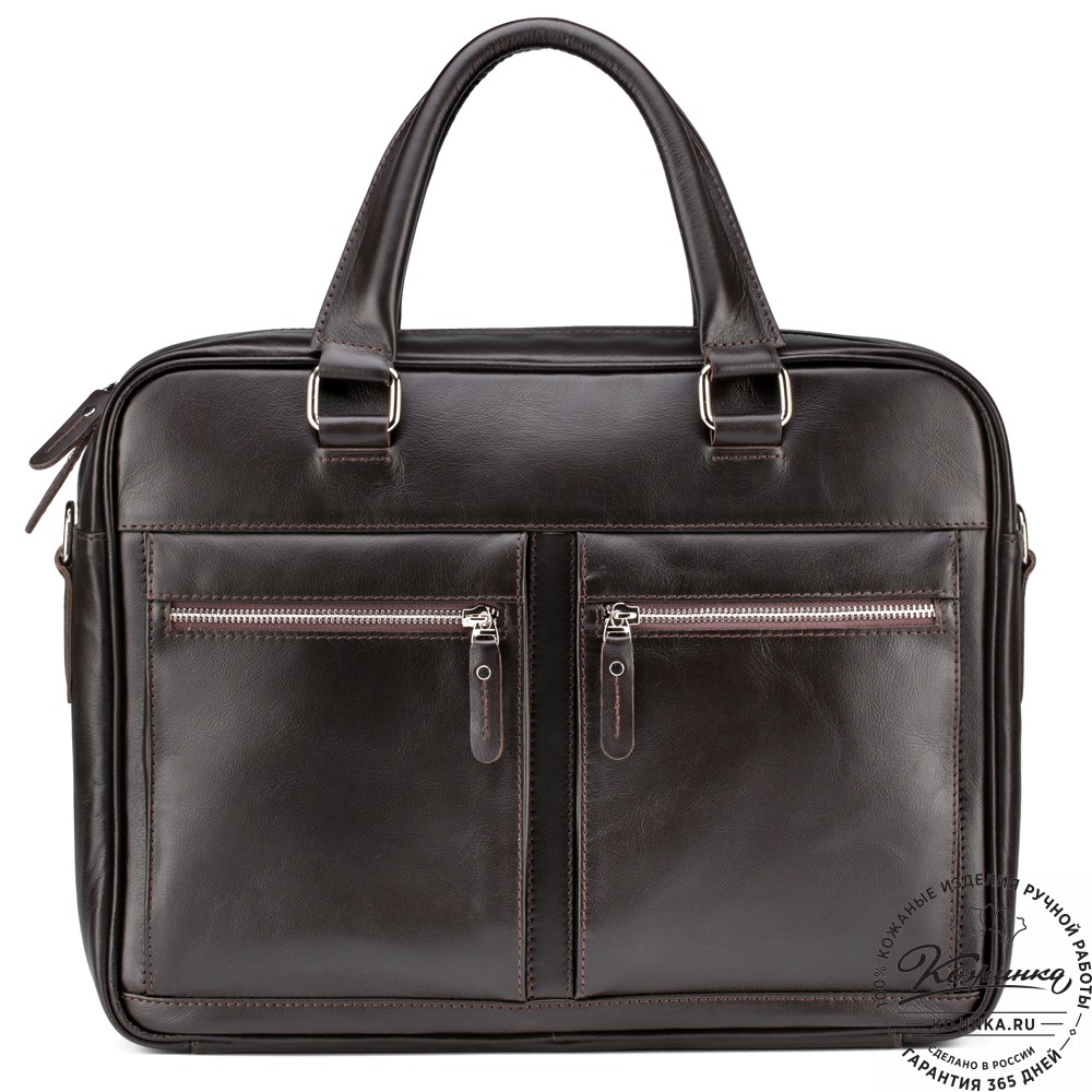 Кожаная сумка "Гофман" (коричневая) – удобная, практичная, стильная деловая сумка из натуральной кожи. Вместительная модель с секцией для ноутбука и удобными карманами внутри и снаружи.