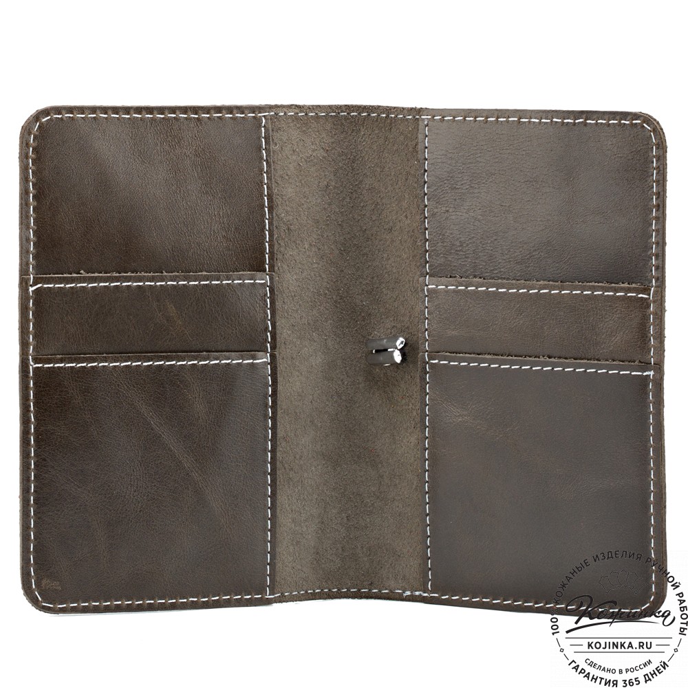 В такой кожаной обложке паспорт будет надежно храниться долгие годы. Внутрь вместе с паспортом можно положить пластиковые карты и визитки и не бояться, что они выпадут!