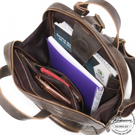 Кожаный рюкзак "Венгрия" – практичный и вместительный рюкзак с двумя отделениями.