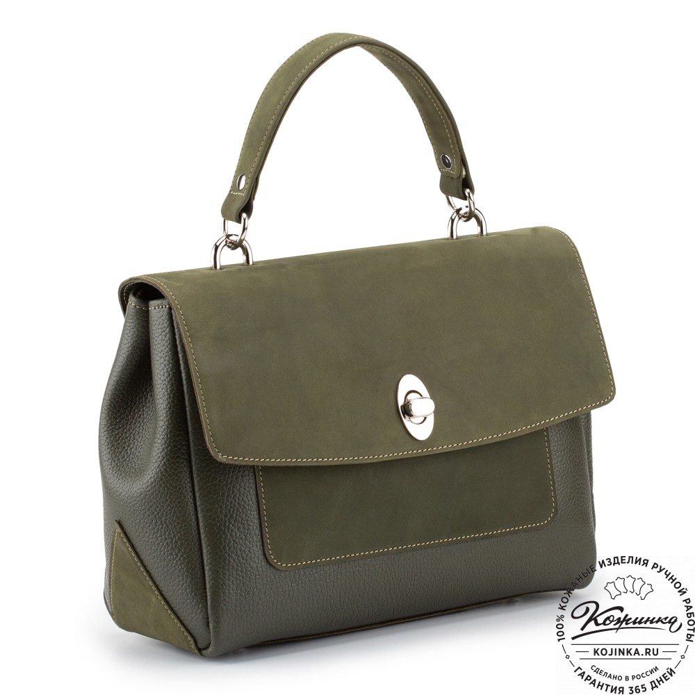 Закрывается сумка клапаном на поворотный замочек.
