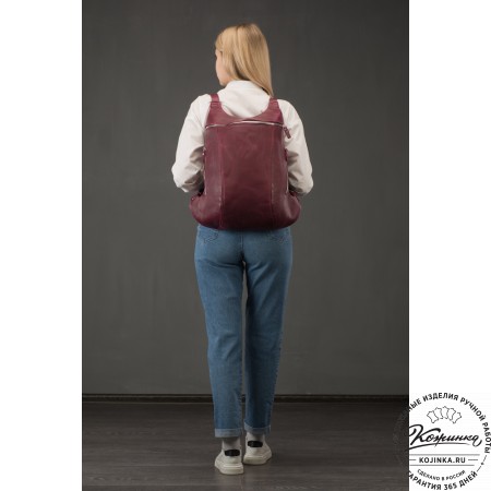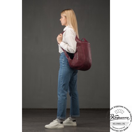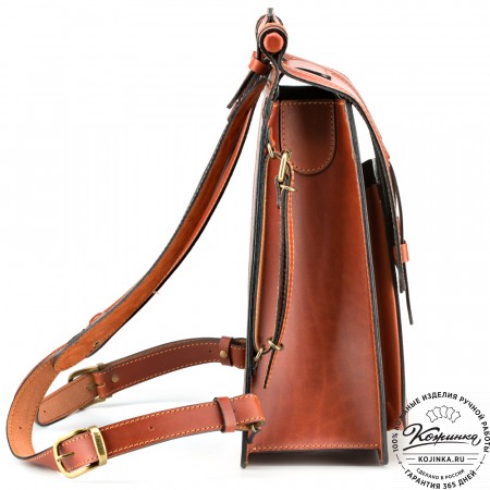 На модели представлен рюкзак "Вена" из кожи Антик рыжего цвета.